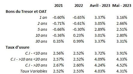 Comme indiqué ci-dessus, les taux ont légèrement augmenté entre Avril et Mai (entre 9 et 18 points de bases), et les taux d’usures (capacité d’emprunt maximum) ont également accru afin de permettre aux acquéreurs une plus grande « flexibilité » d’emprunt.
